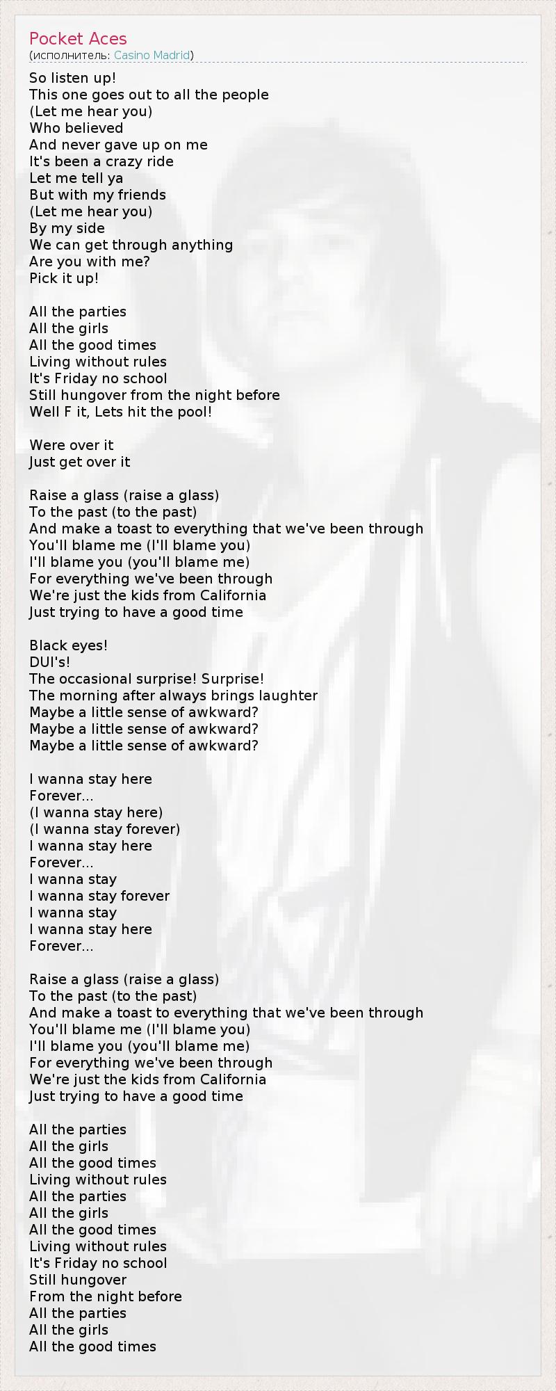 А как ты думаешь, о чем песня "Pocket Aces" ?