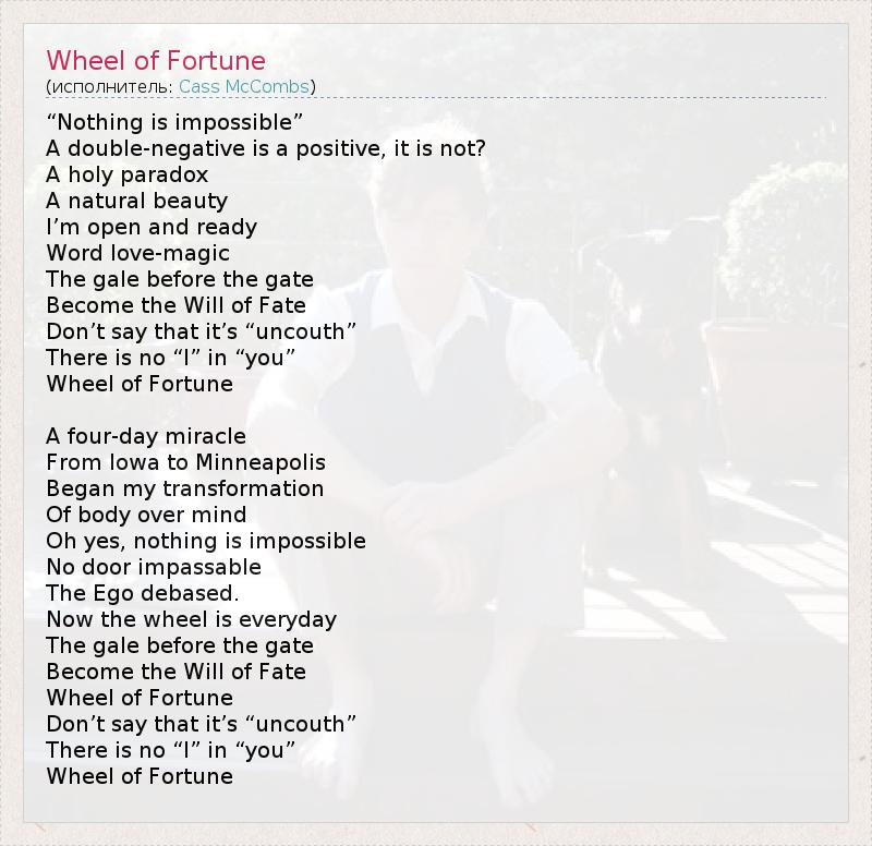 А как ты думаешь, о чем песня "Wheel of Fortune" ?