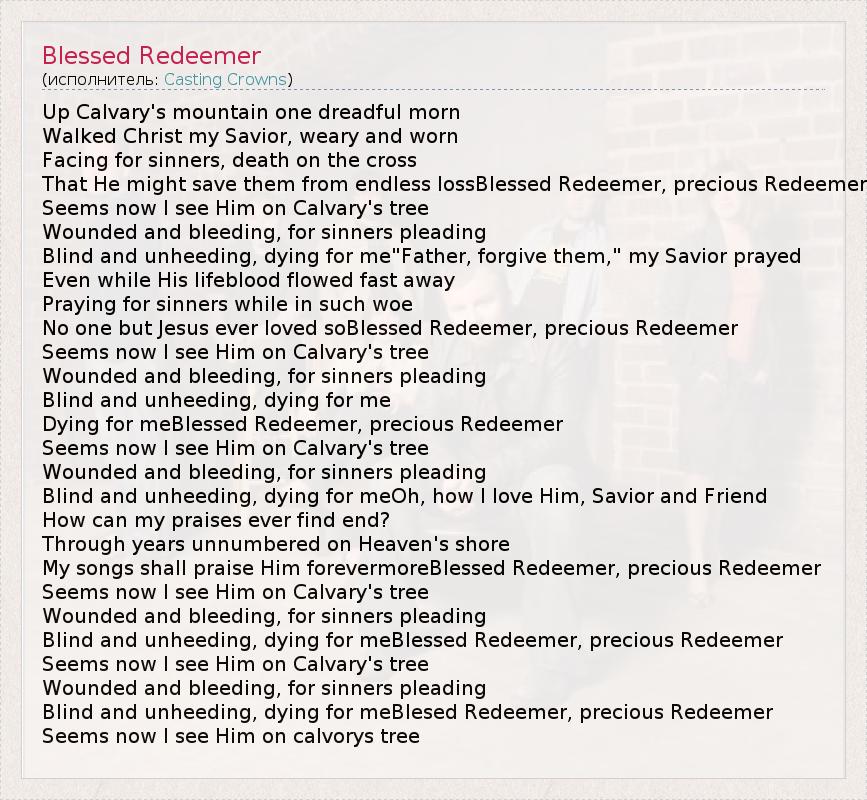 А как ты думаешь, о чем песня "Blessed Redeemer" ?