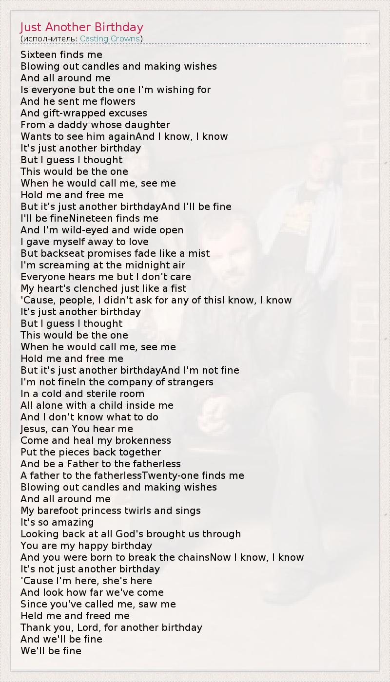But it's just another birthdayAnd I'm not fine
