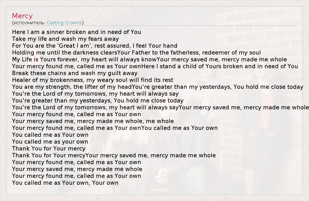 Thank You for Your mercyYour mercy saved me, mercy made me whole