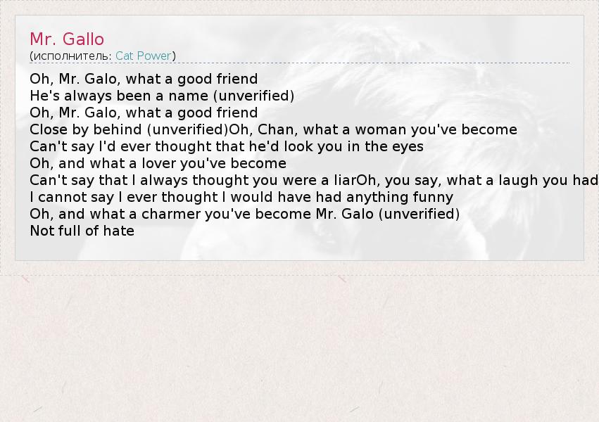 А как ты думаешь, о чем песня "Mr. Gallo" ?