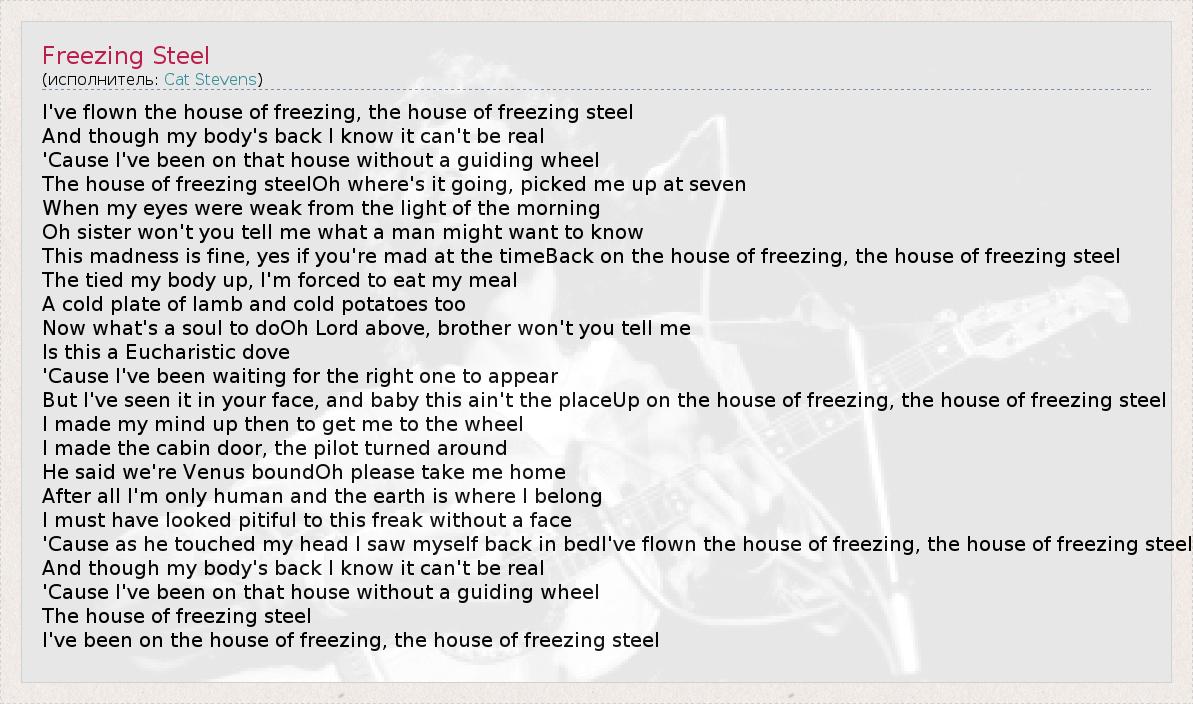 This madness is fine, yes if you're mad at the timeBack on the house of freezing, the house of freezing steel