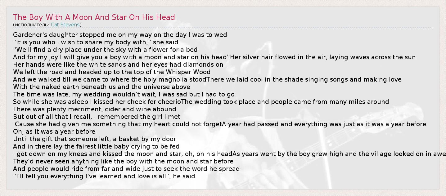 А как ты думаешь, о чем песня "The Boy With A Moon And Star On His Head" ?
