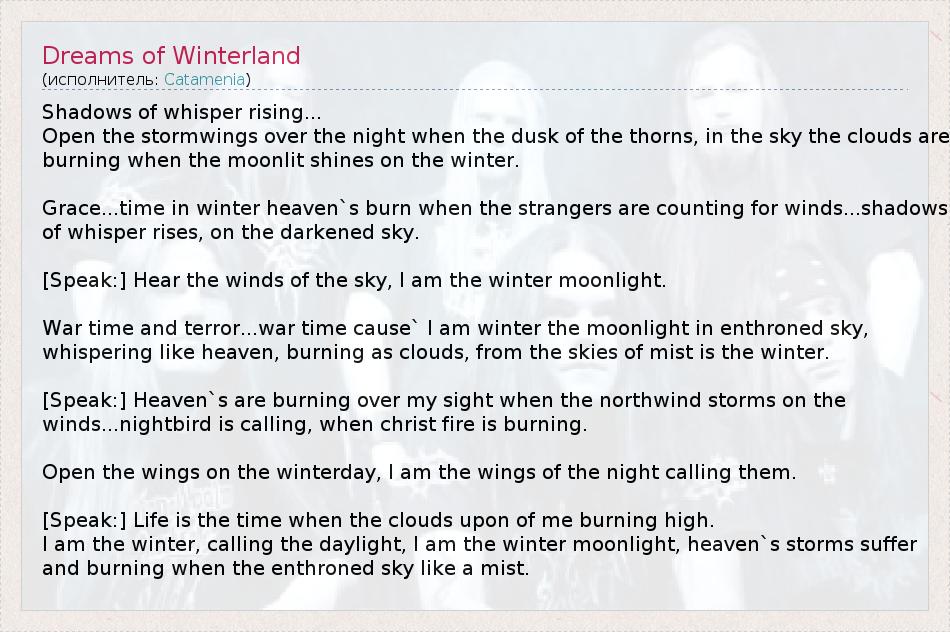 А как ты думаешь, о чем песня "Dreams of Winterland" ?