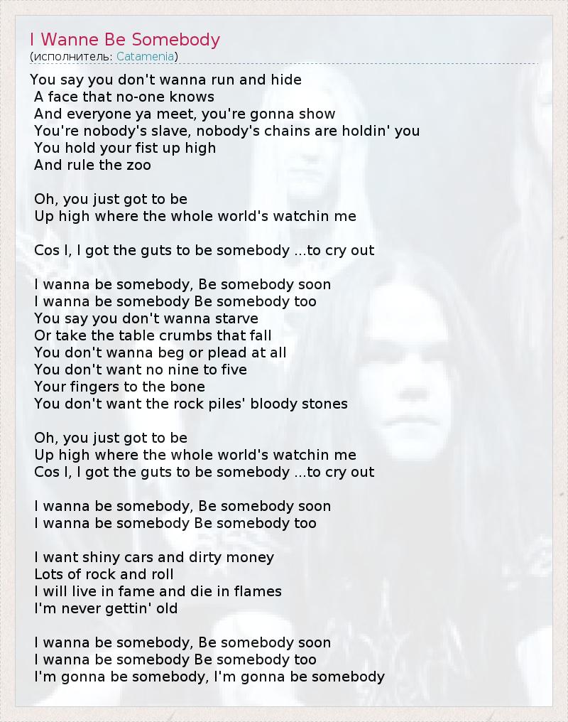 I wanna be somebody Be somebody too