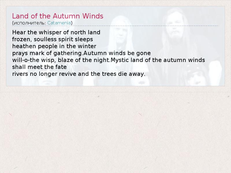 А как ты думаешь, о чем песня "Land of the Autumn Winds" ?