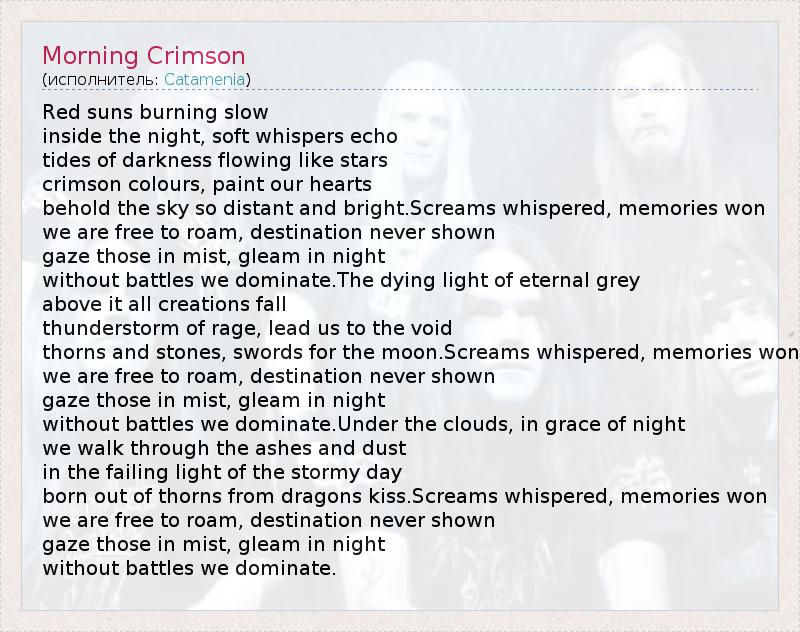А как ты думаешь, о чем песня "Morning Crimson" ?