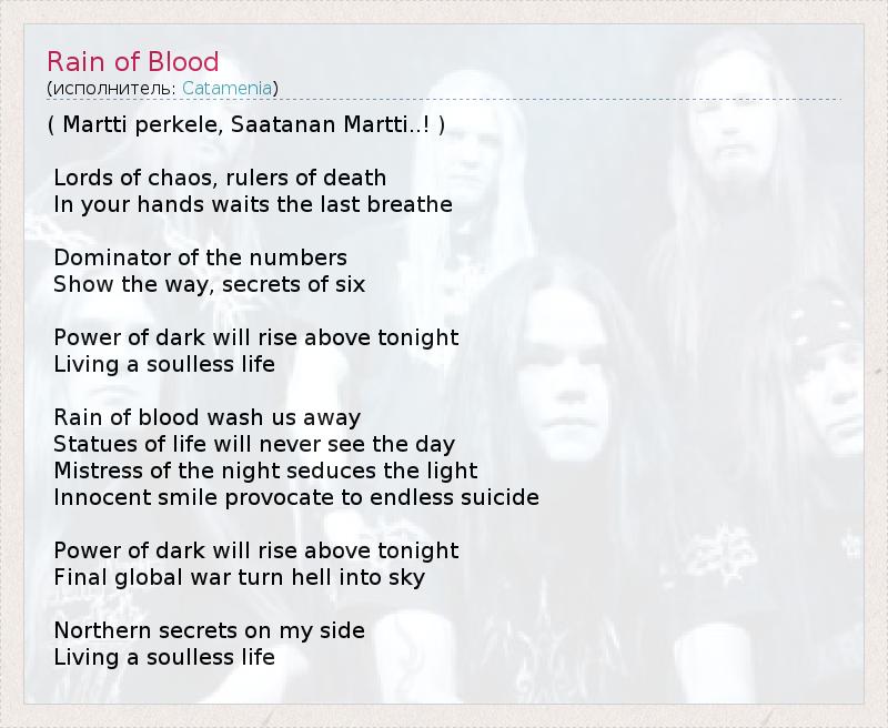 А как ты думаешь, о чем песня "Rain of Blood" ?