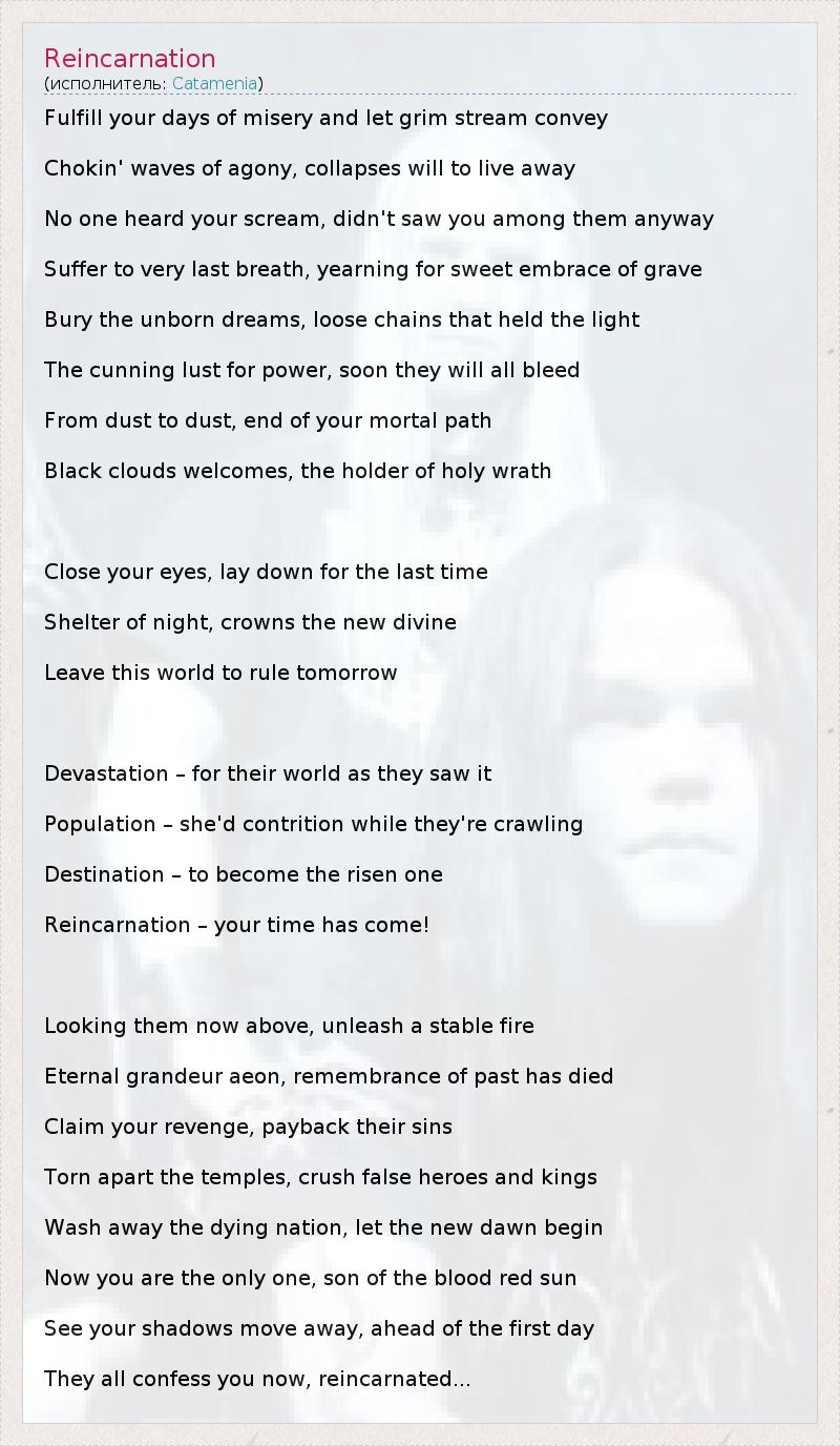 А как ты думаешь, о чем песня "Reincarnation" ?