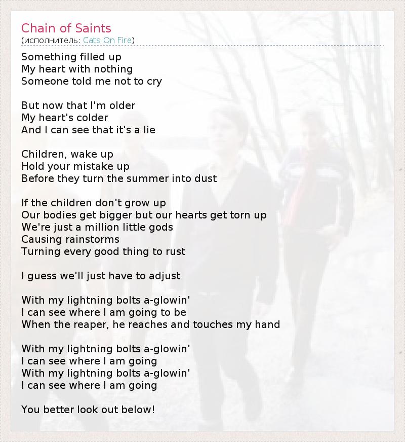 А как ты думаешь, о чем песня "Chain of Saints" ?