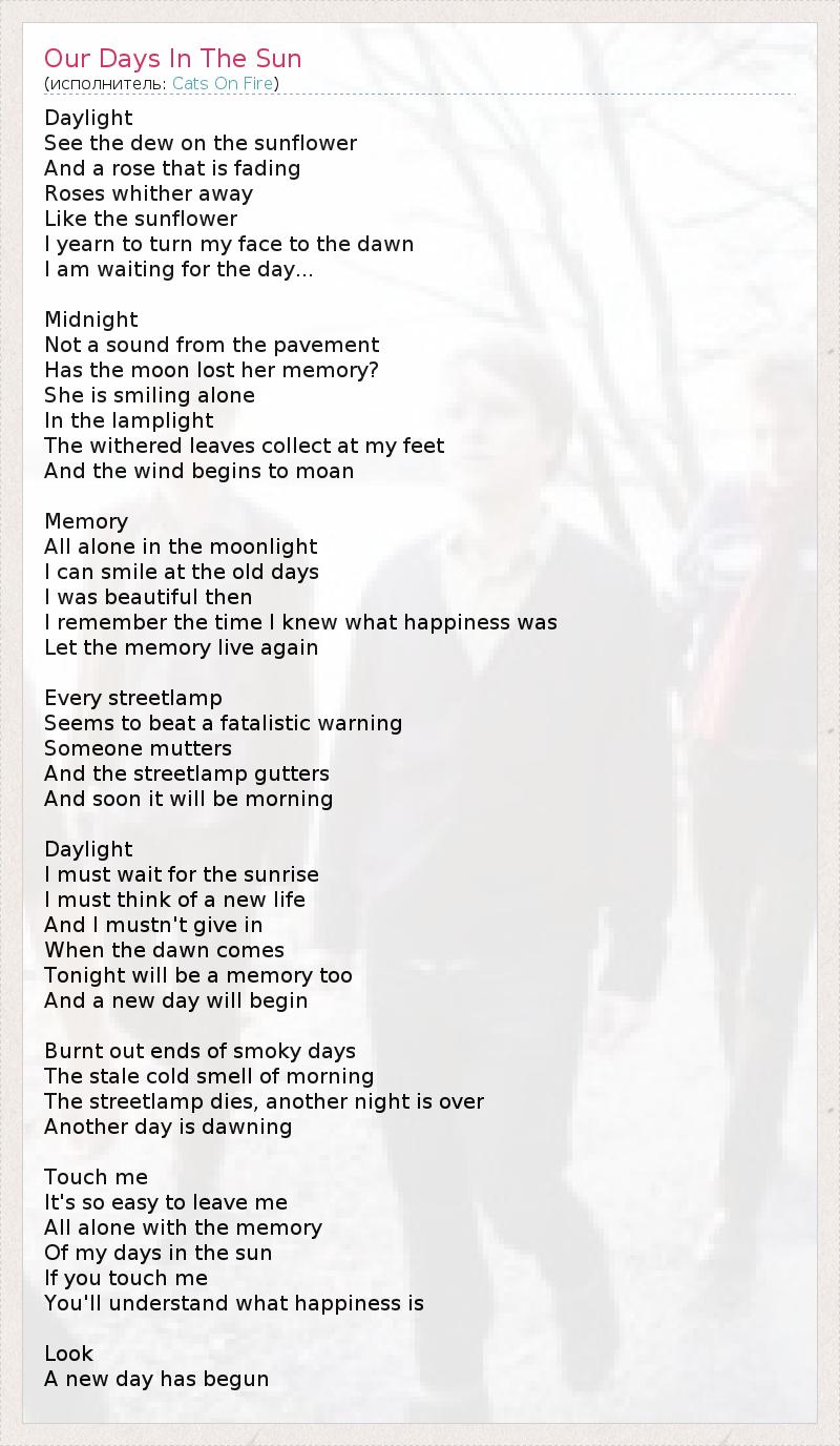 А как ты думаешь, о чем песня "Our Days In The Sun" ?