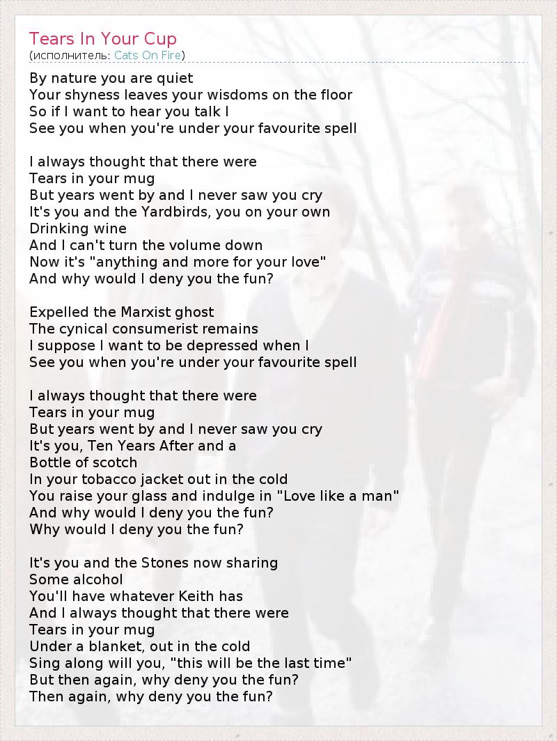 А как ты думаешь, о чем песня "Tears In Your Cup" ?