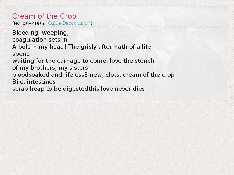А как ты думаешь, о чем песня "Cream of the Crop" ?