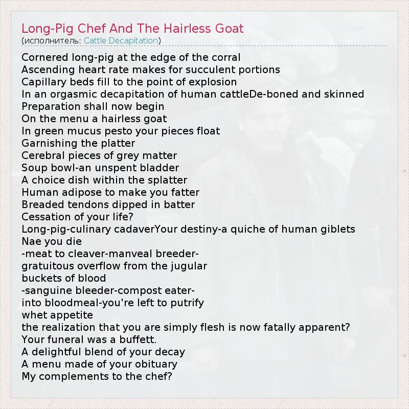 А как ты думаешь, о чем песня "Long-Pig Chef And The Hairless Goat" ?