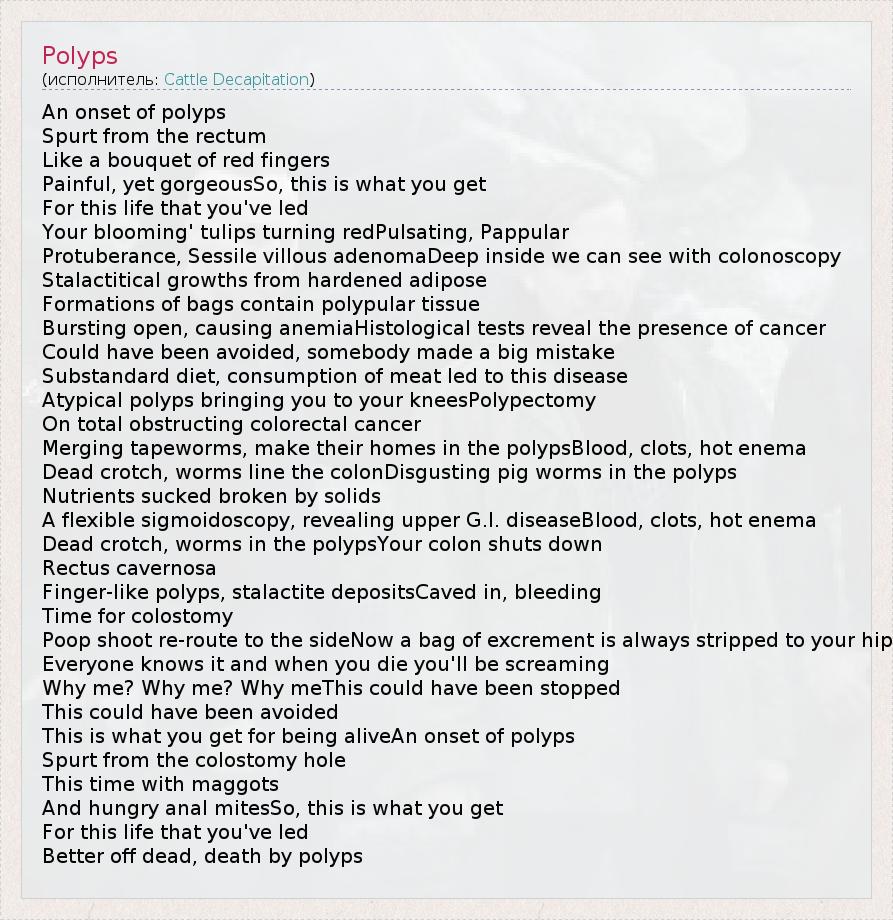 Merging tapeworms, make their homes in the polypsBlood, clots, hot enema