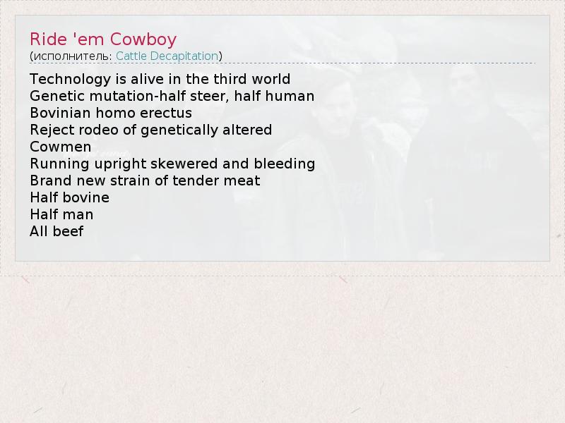 А как ты думаешь, о чем песня "Ride 'em Cowboy" ?