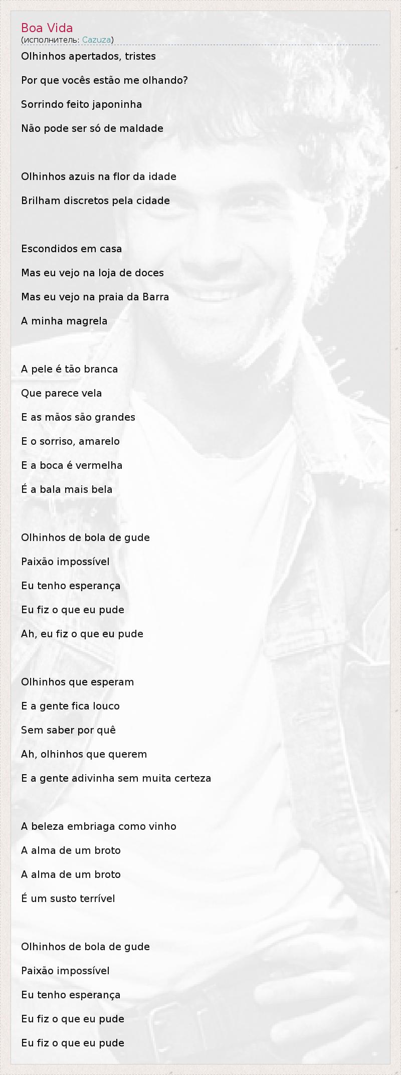 А как ты думаешь, о чем песня "Boa Vida" ?