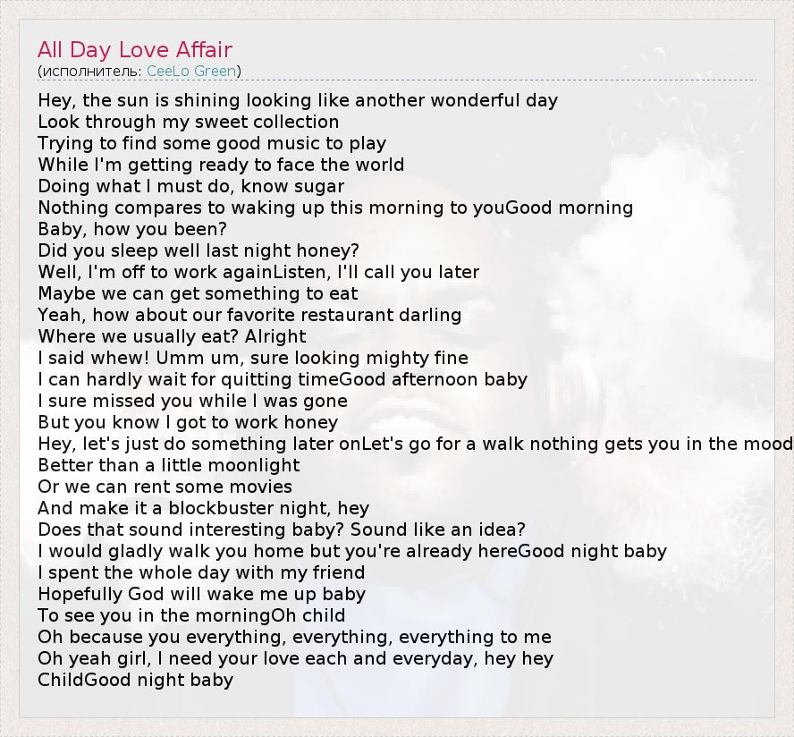 А как ты думаешь, о чем песня "All Day Love Affair" ?