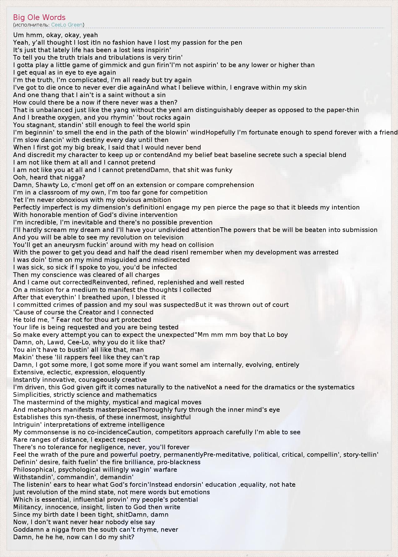 А как ты думаешь, о чем песня "Big Ole Words" ?