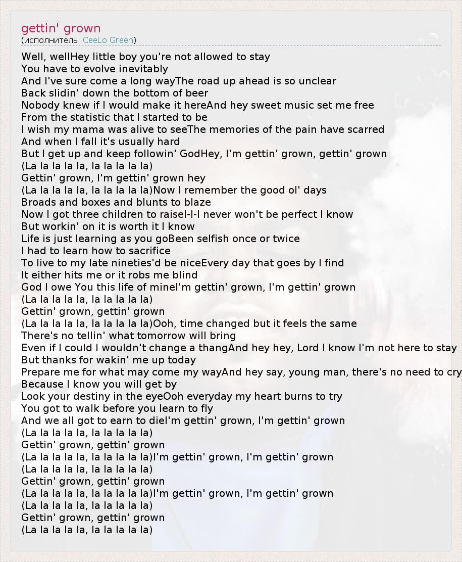 А как ты думаешь, о чем песня "gettin' grown" ?