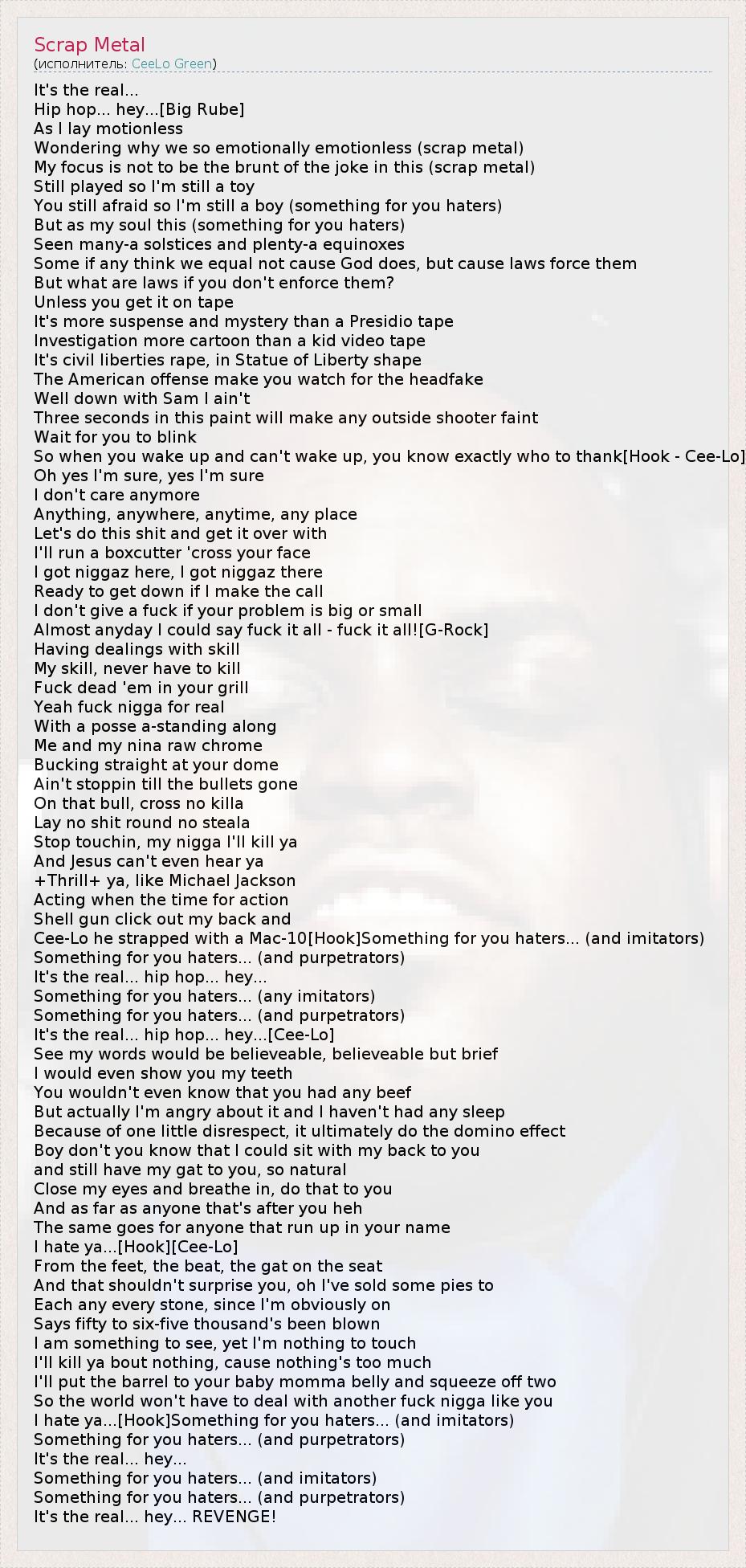 А как ты думаешь, о чем песня "Scrap Metal" ?