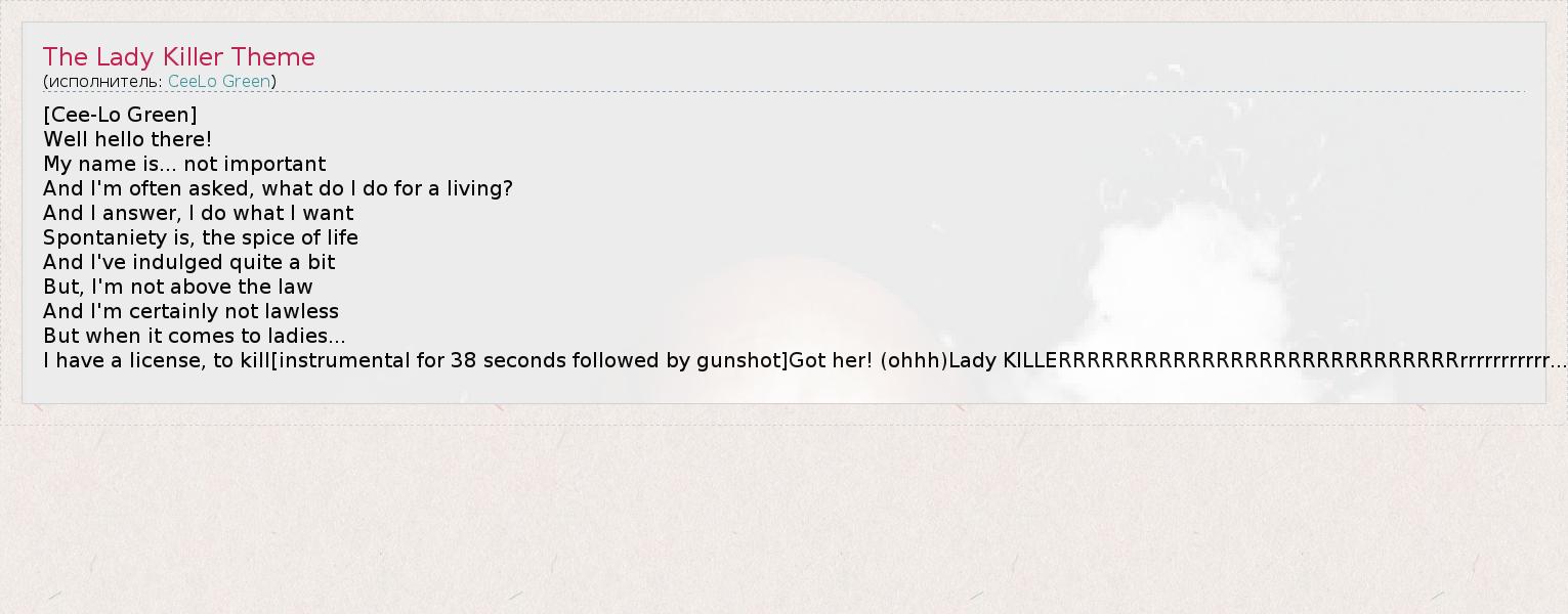 А как ты думаешь, о чем песня "The Lady Killer Theme" ?