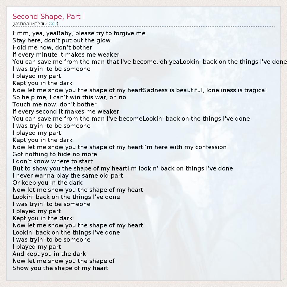 А как ты думаешь, о чем песня "Second Shape, Part I" ?