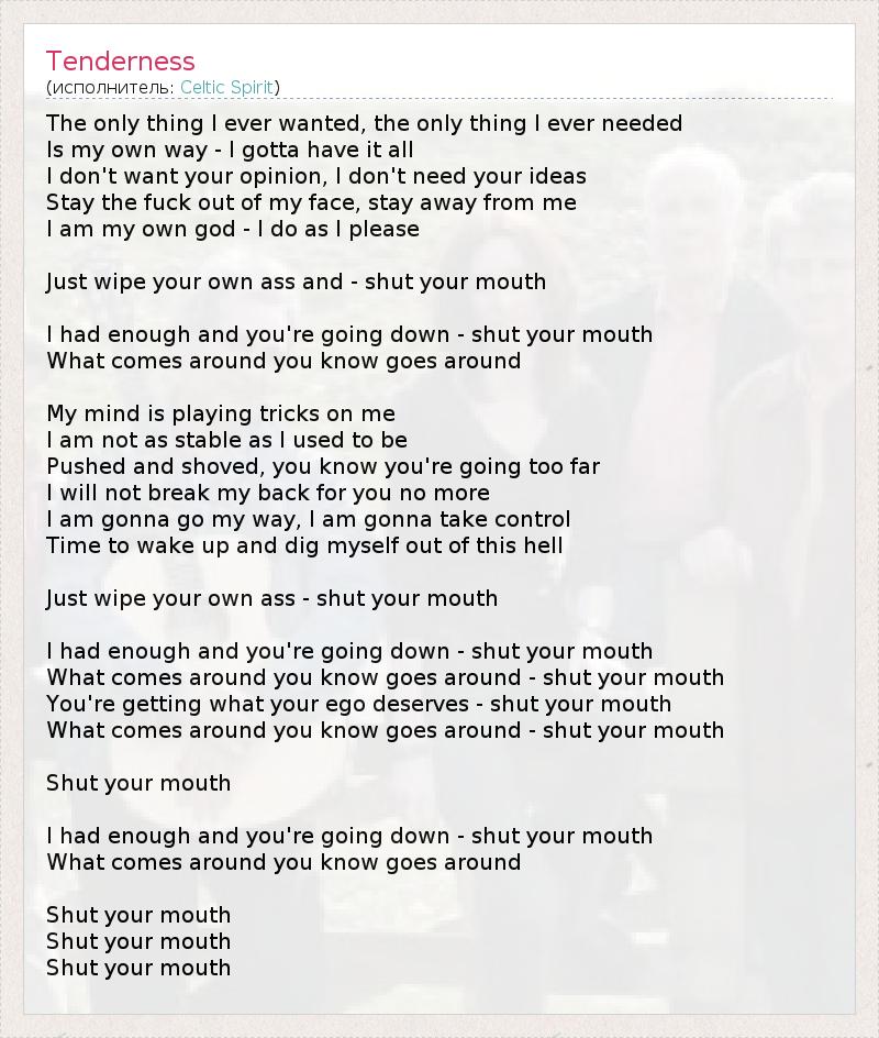 Всё уходит так же, как и приходит, – закрой свой рот.
