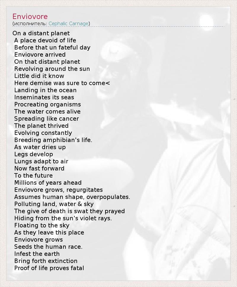 А как ты думаешь, о чем песня "Enviovore" ?