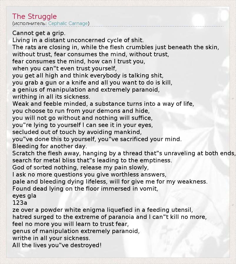 А как ты думаешь, о чем песня "The Struggle" ?