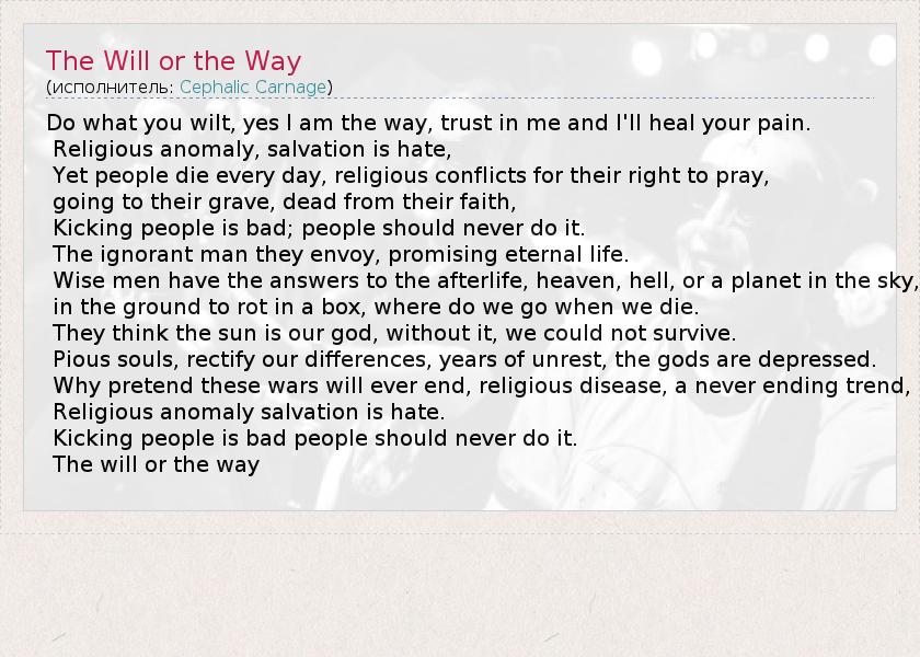 А как ты думаешь, о чем песня "The Will or the Way" ?