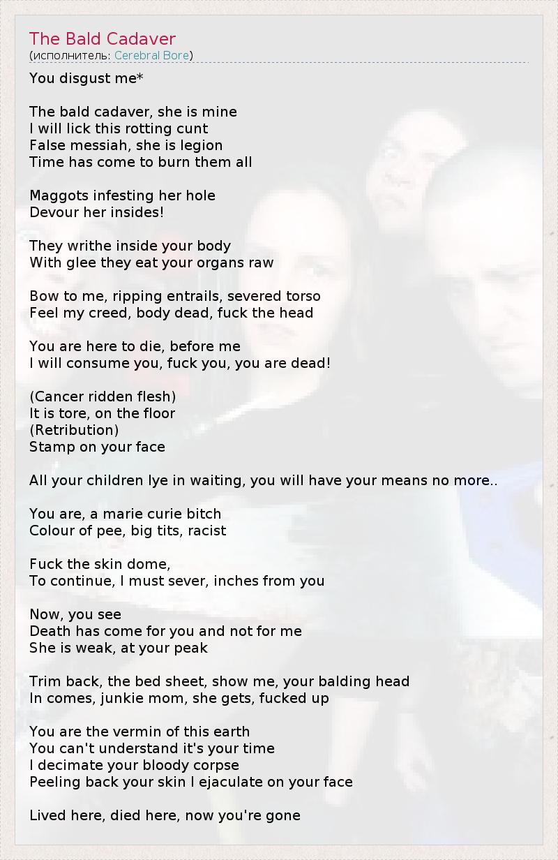 А как ты думаешь, о чем песня "The Bald Cadaver" ?