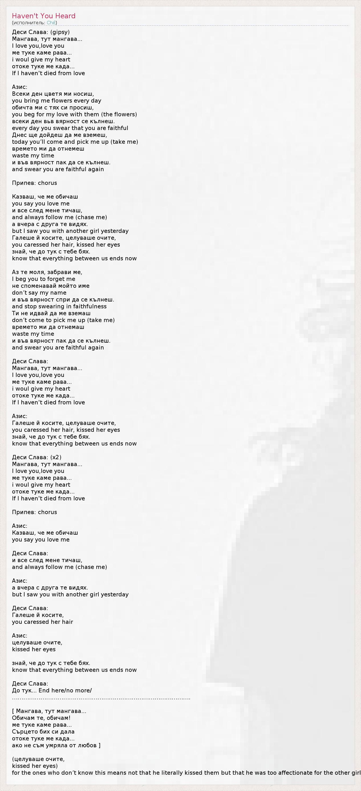 А как ты думаешь, о чем песня "Haven't You Heard" ?