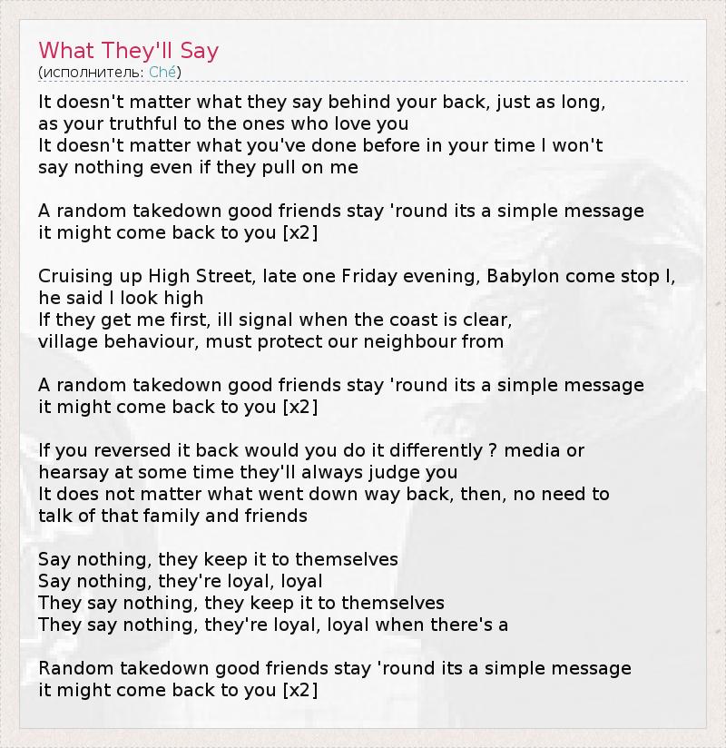 А как ты думаешь, о чем песня "What They'll Say" ?