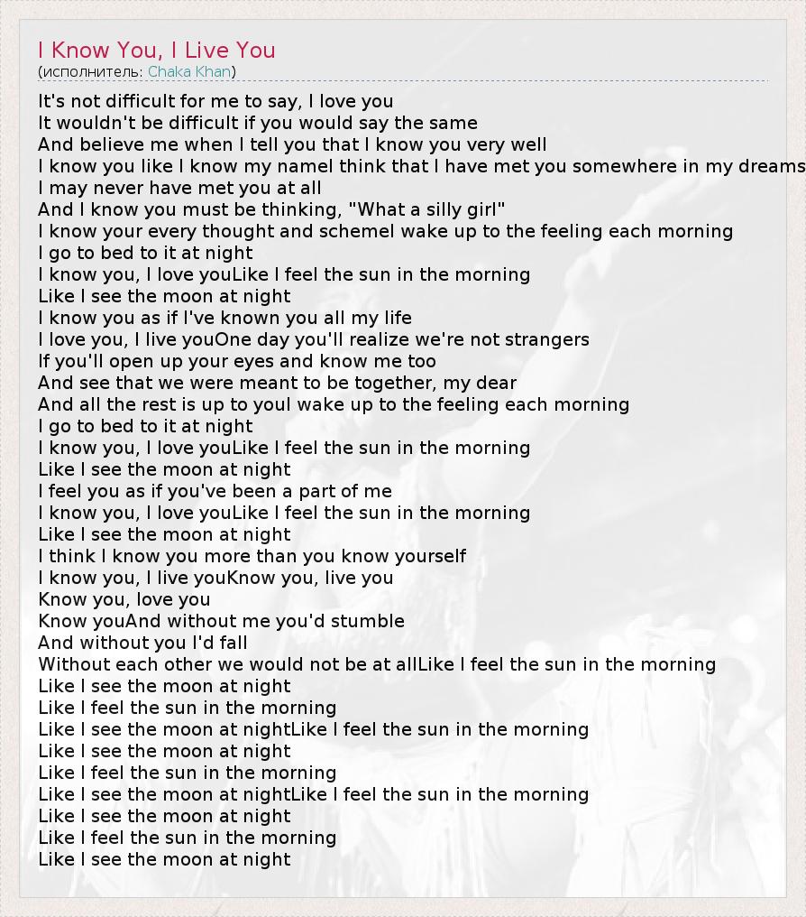 ГлавнаяИсполнителиChaka KhanI Know You, I Live You