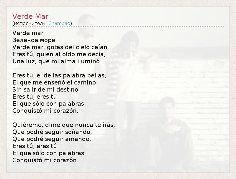 А как ты думаешь, о чем песня "Verde Mar" ?