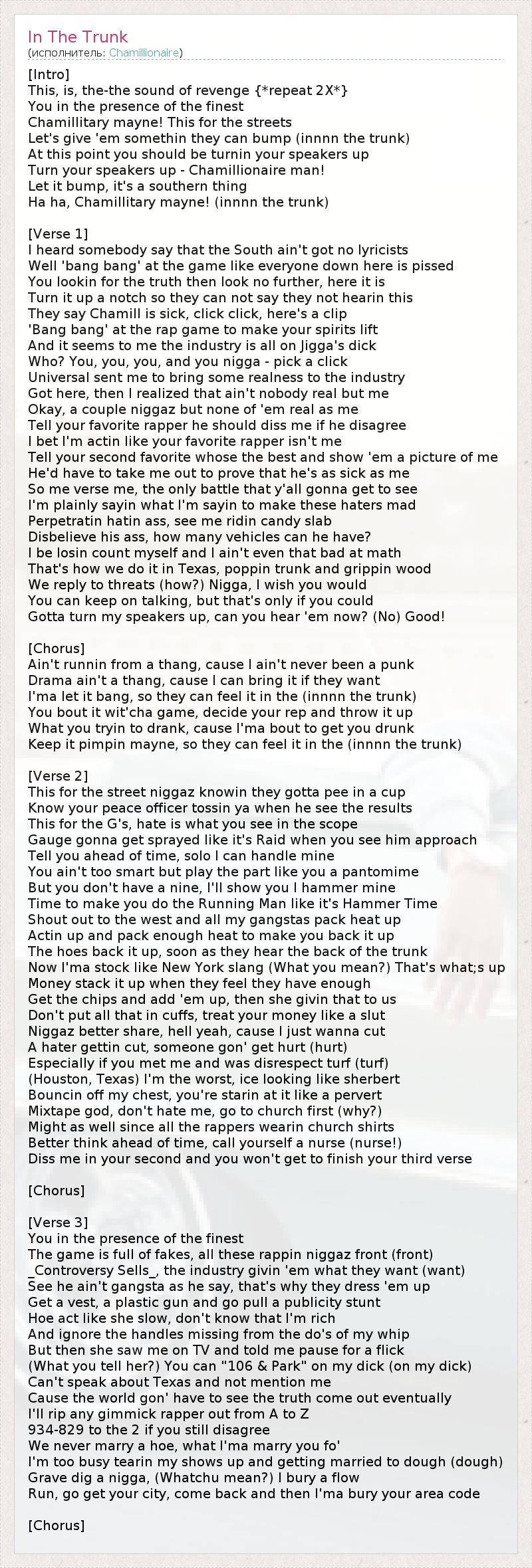 А как ты думаешь, о чем песня "In The Trunk" ?