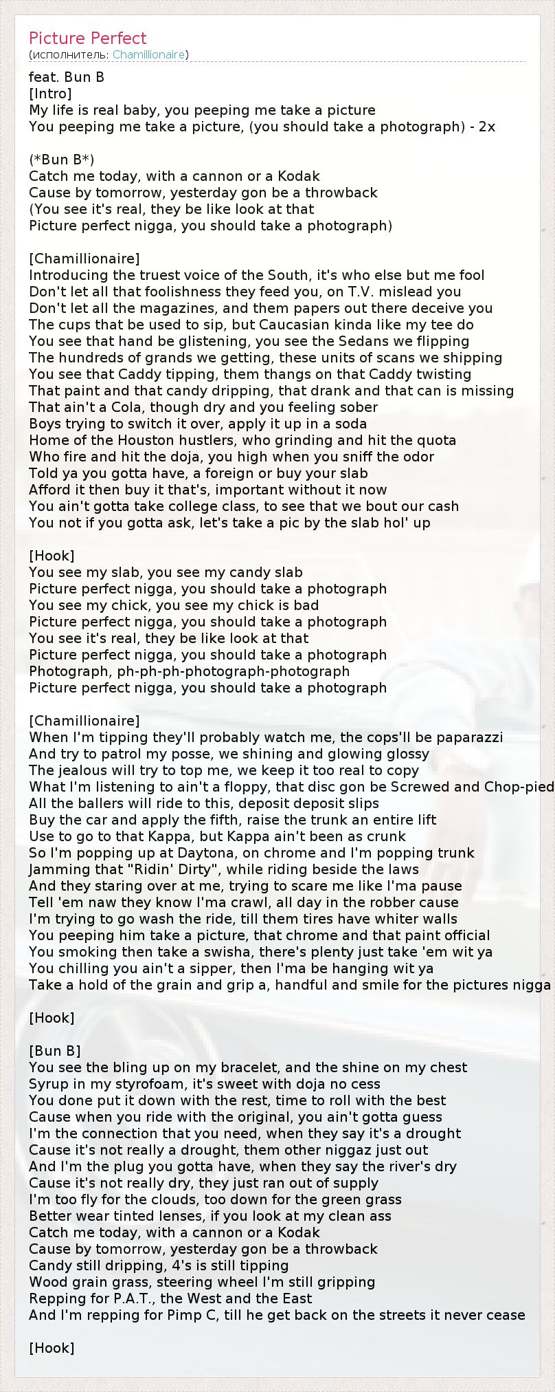 А как ты думаешь, о чем песня "Picture Perfect" ?