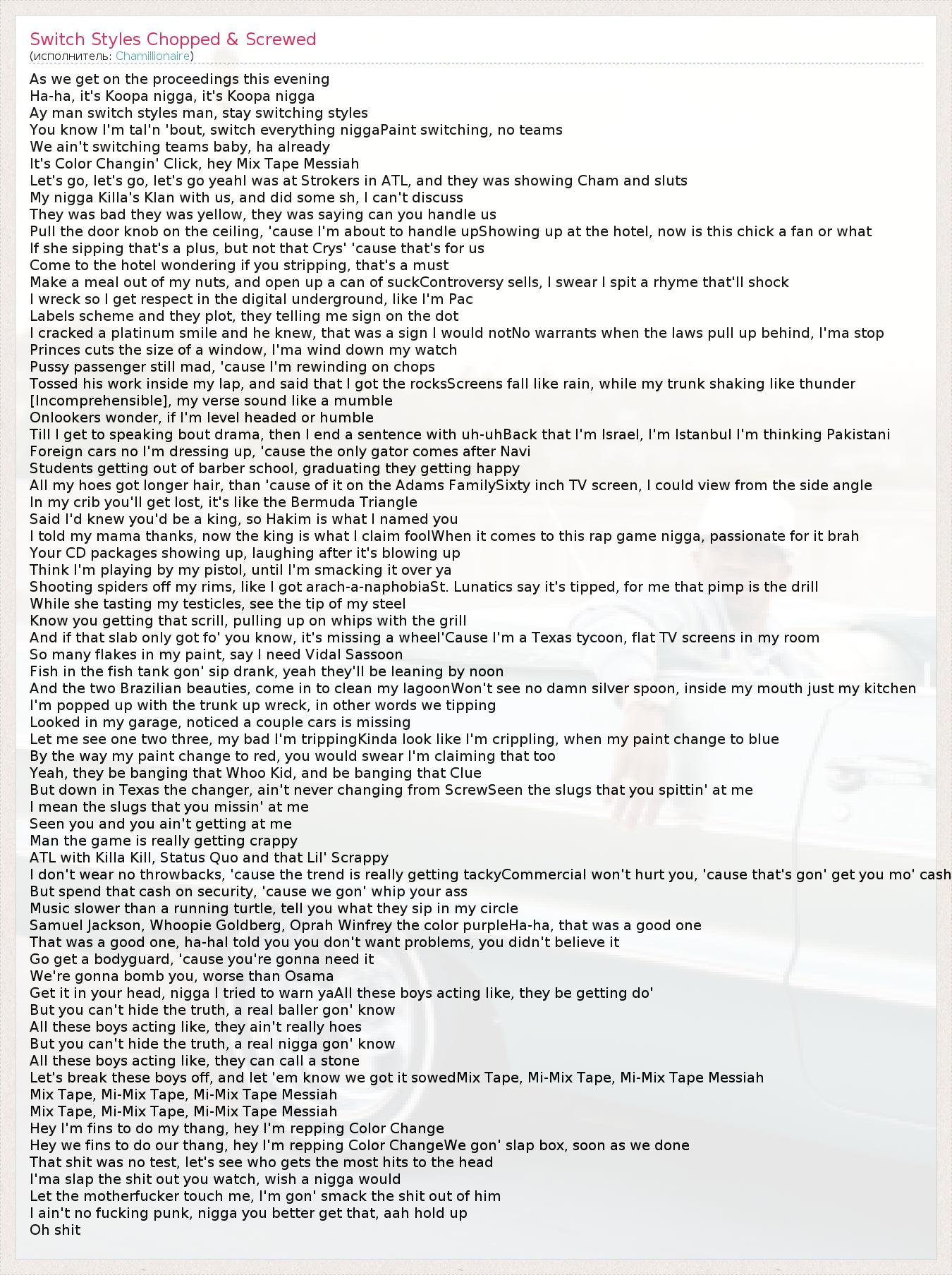 А как ты думаешь, о чем песня "Switch Styles Chopped & Screwed" ?