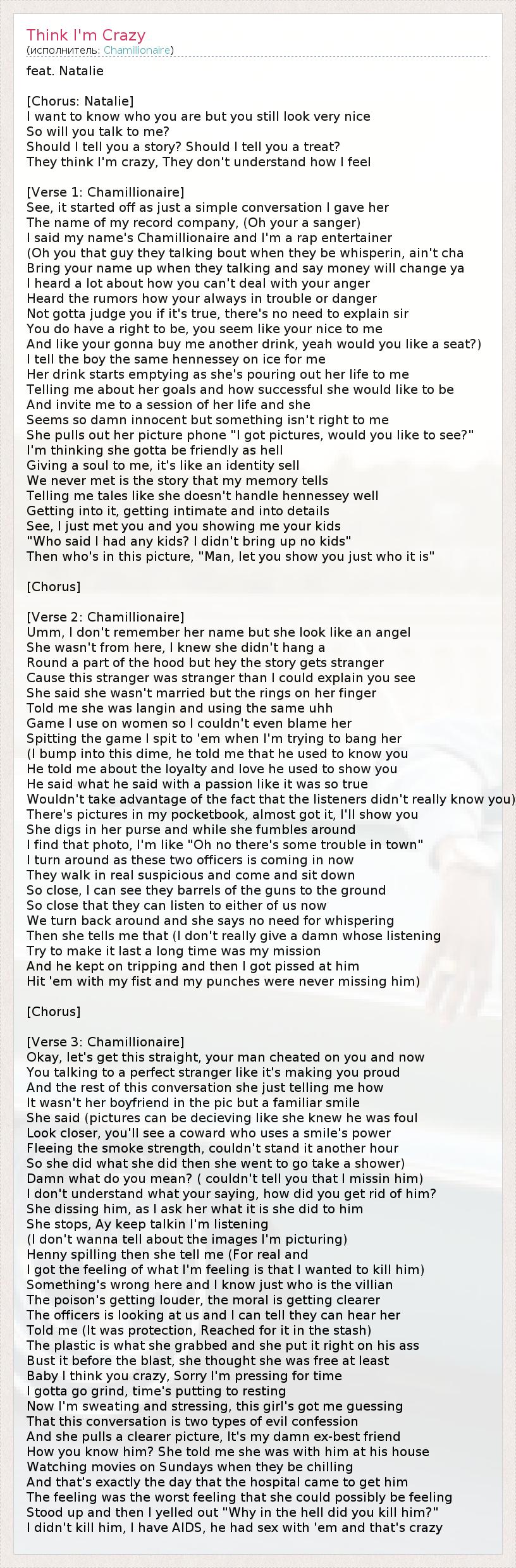 А как ты думаешь, о чем песня "Think I'm Crazy" ?