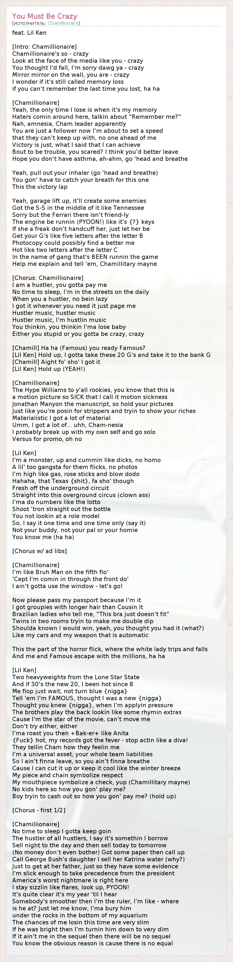 Ну а это творение на любителя. У Вэйна много недоброжелателей. Что по мне, здесь Лил был не на высоте. А вот Кам неотразим. Ещё раздражают постоянные выкрики сопровождающие песню.