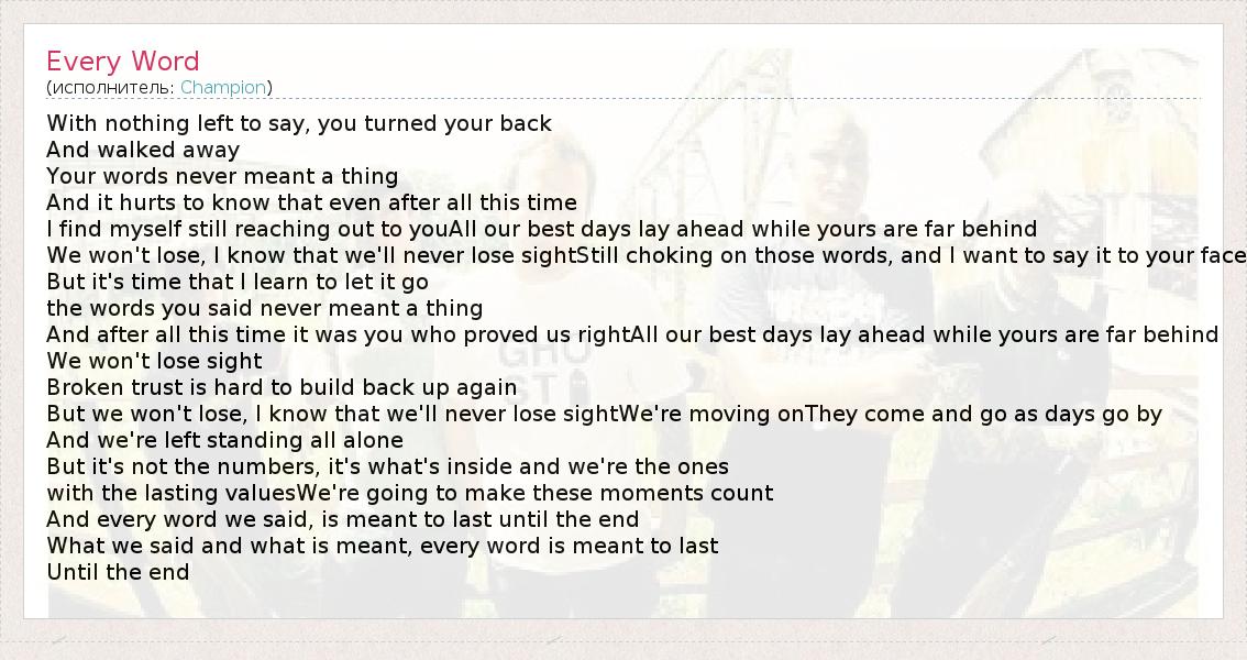 And after all this time it was you who proved us rightAll our best days lay ahead while yours are far behind