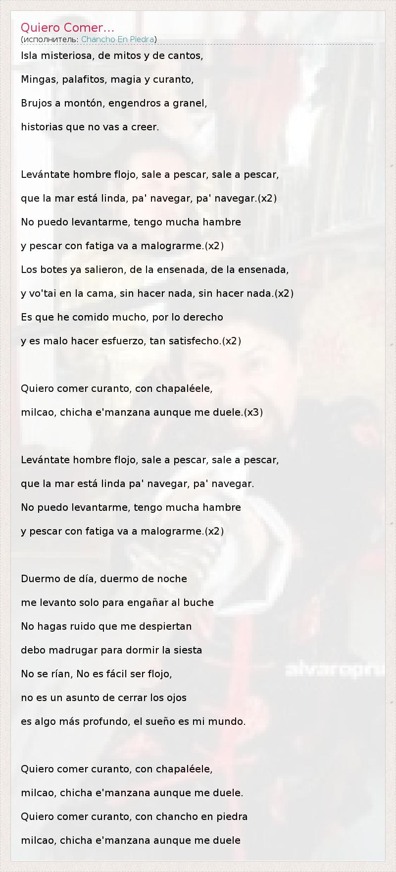 А как ты думаешь, о чем песня "Quiero Comer..." ?