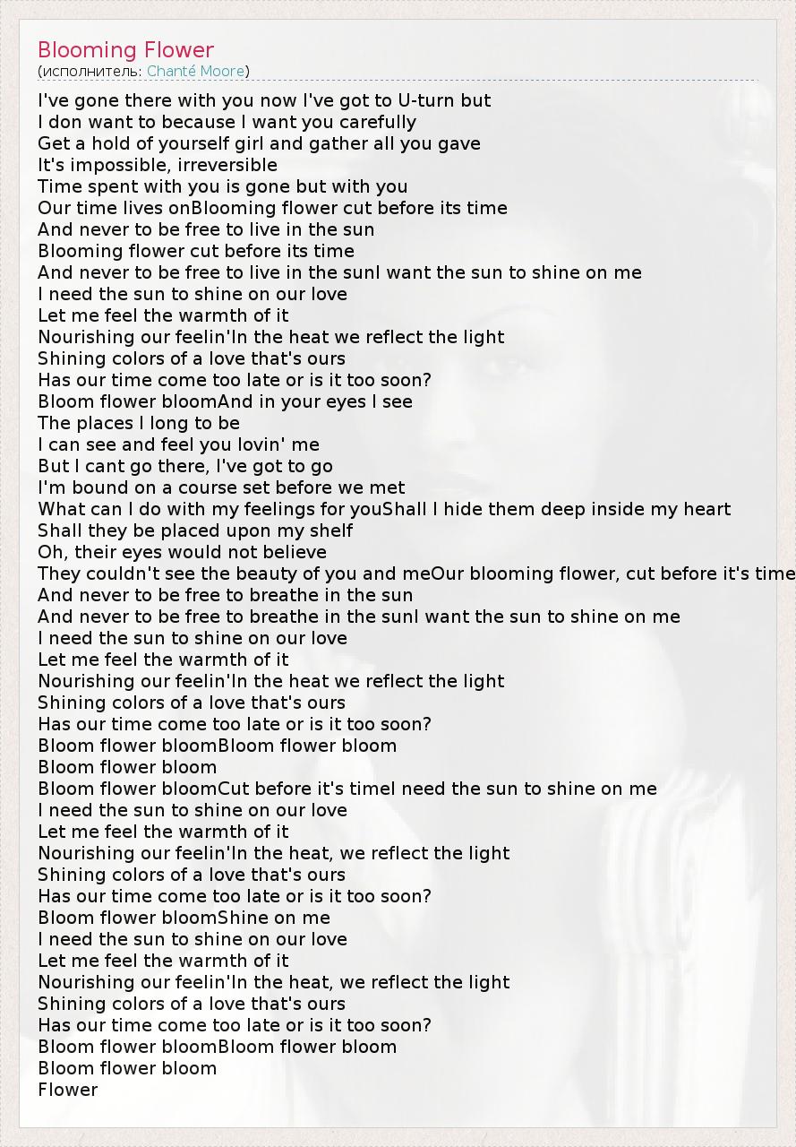 Bloom flower bloomCut before it's timeI need the sun to shine on me