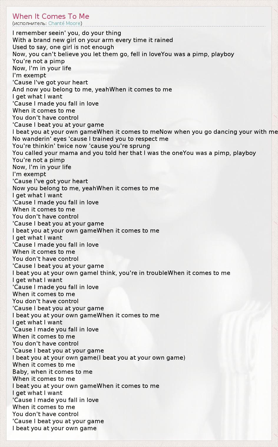 А как ты думаешь, о чем песня "When It Comes To Me" ?