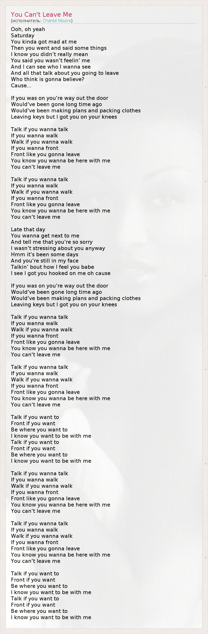 А как ты думаешь, о чем песня "You Can't Leave Me" ?