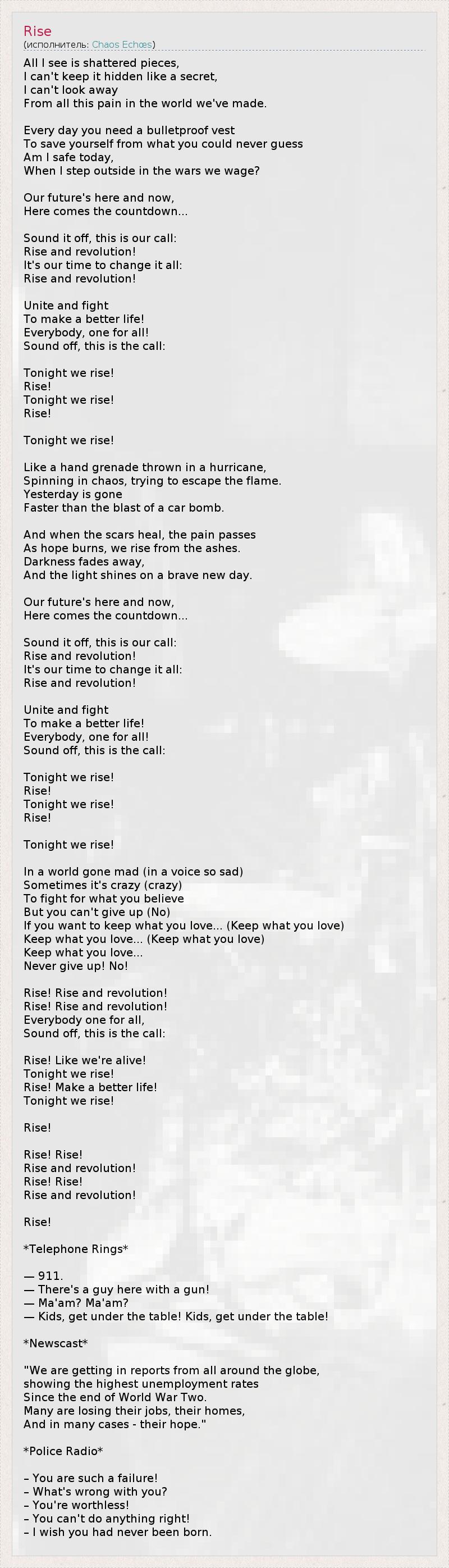 А как ты думаешь, о чем песня "Rise" ?