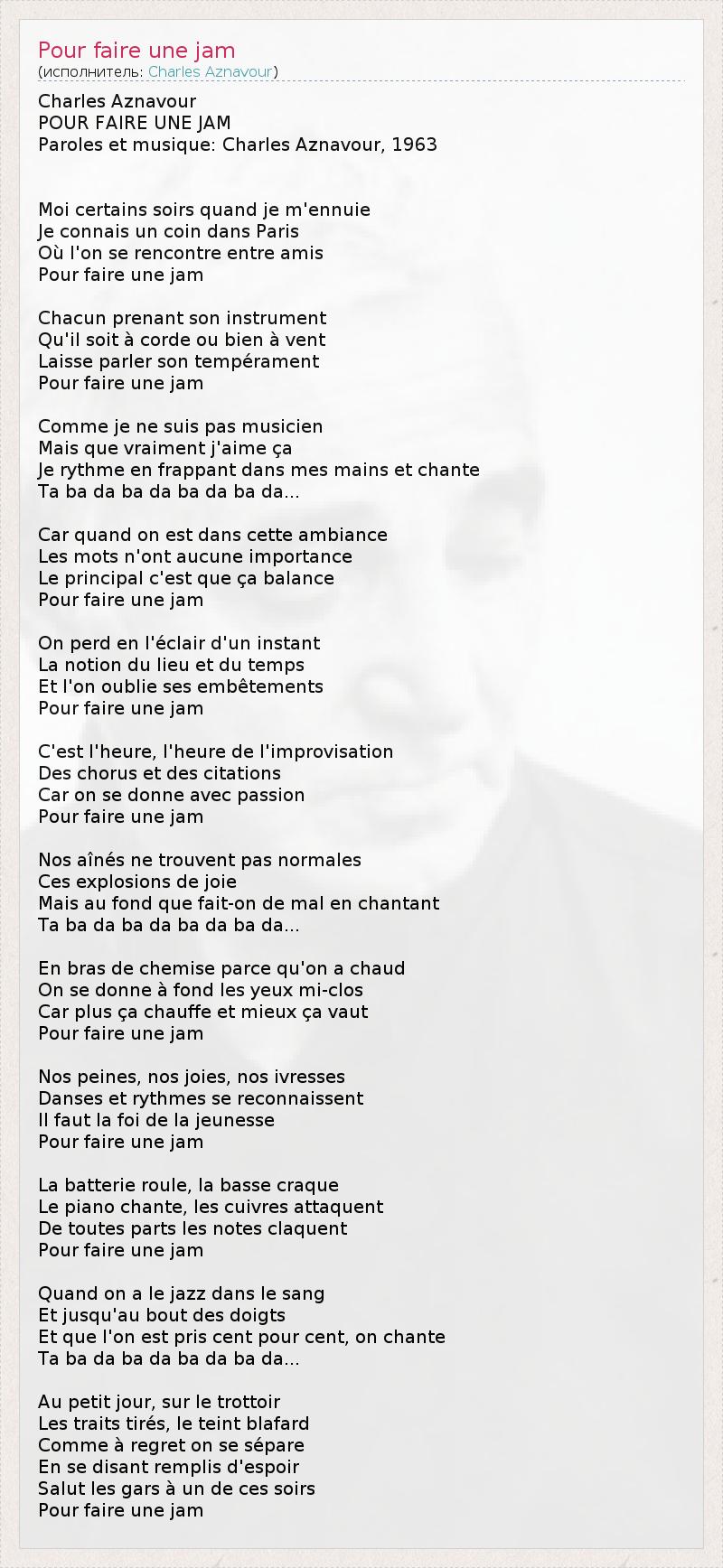 А как ты думаешь, о чем песня "Pour faire une jam" ?