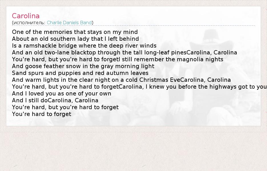You're hard, but you're hard to forgetCarolina, I knew you before the highways got to you